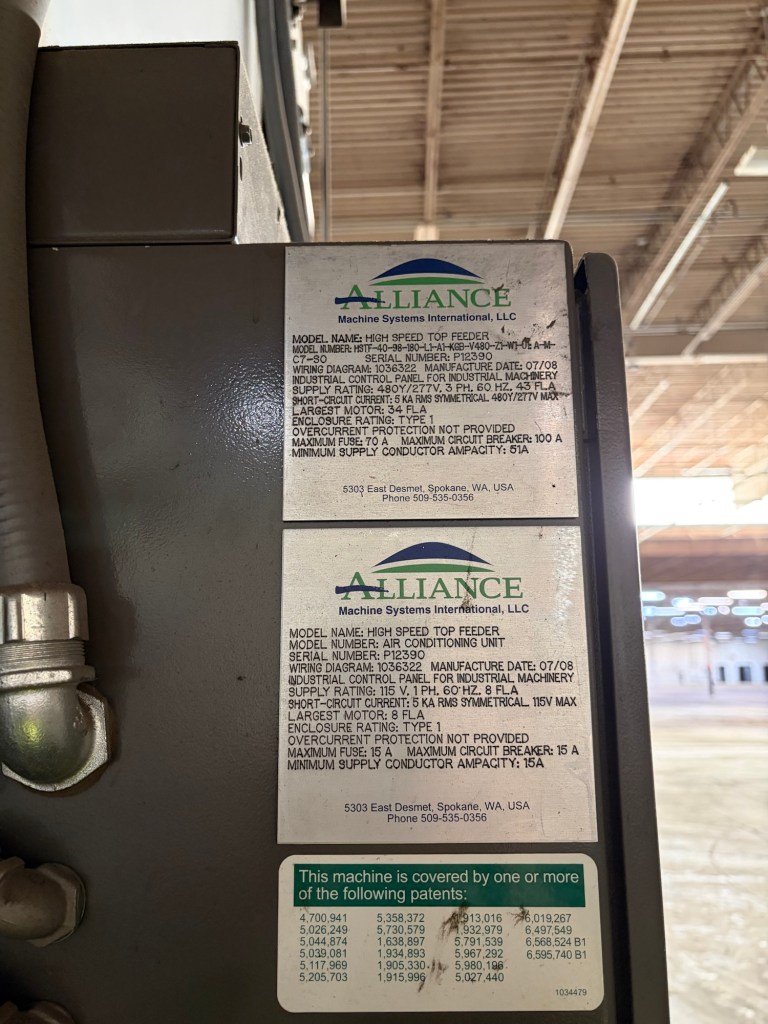 We have an Alliance high speed top feeder pre-feeder/flipper, along with an Alliance 6 x 6 load former for sale located in the Northeast. Please refer to the photos below. Additionally, feel free to reach out either by phone at 817-600-1586 or by email at michaelthacker@thackersalesinc.com for more information and pricing.
